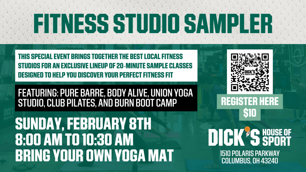 Fitness Studio Sampler at Polaris DICK’S House of Sport Sunday, February 8th | 8:00–10:30 AM | 1510 Polaris Parkway, Columbus, OH 43240 $10 Admission | Bring Your Own Yoga […]